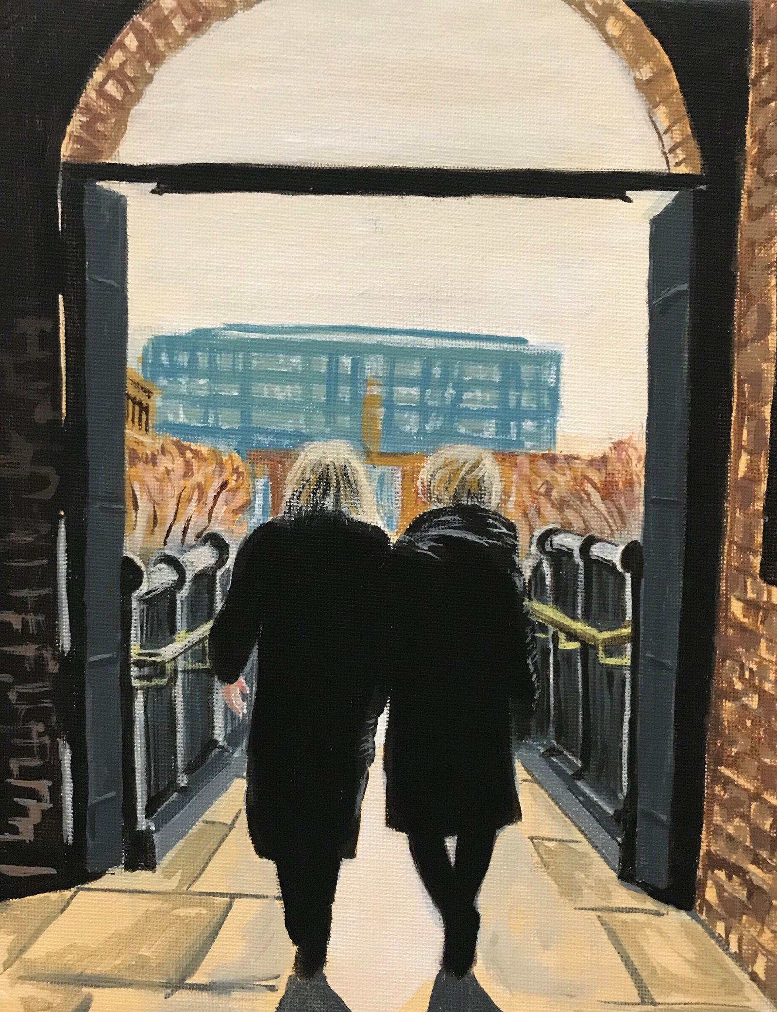 I took two photographs and ended up doing two paintings. One for Jenny and one for Jill. I had wanted to call the paintings 'old friends' but I don't think they liked that. I just love the silhouette their figures make.