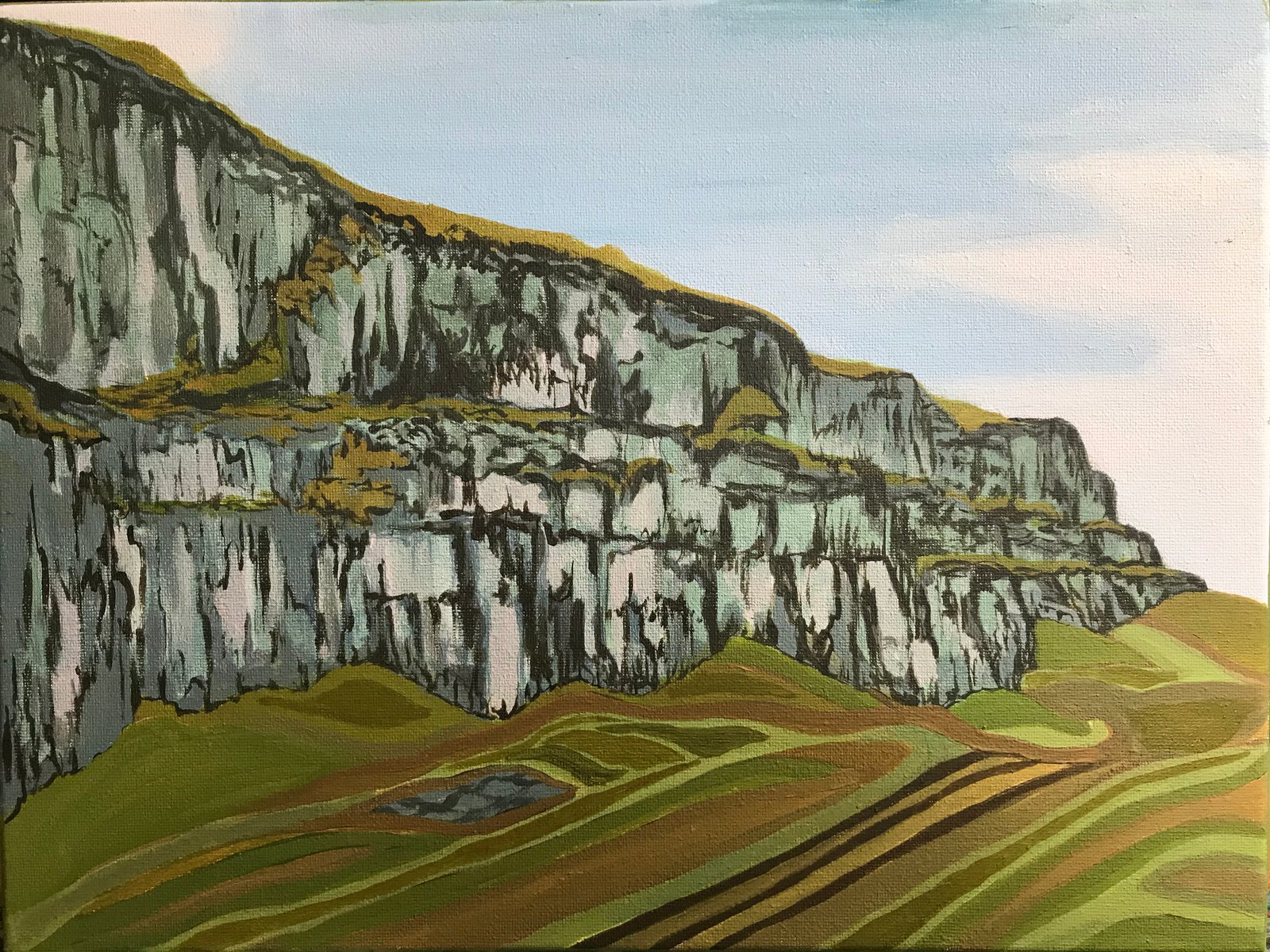 Llangattock Escarpment 2 - framed, 2018, 30x40cm cm, acrylic