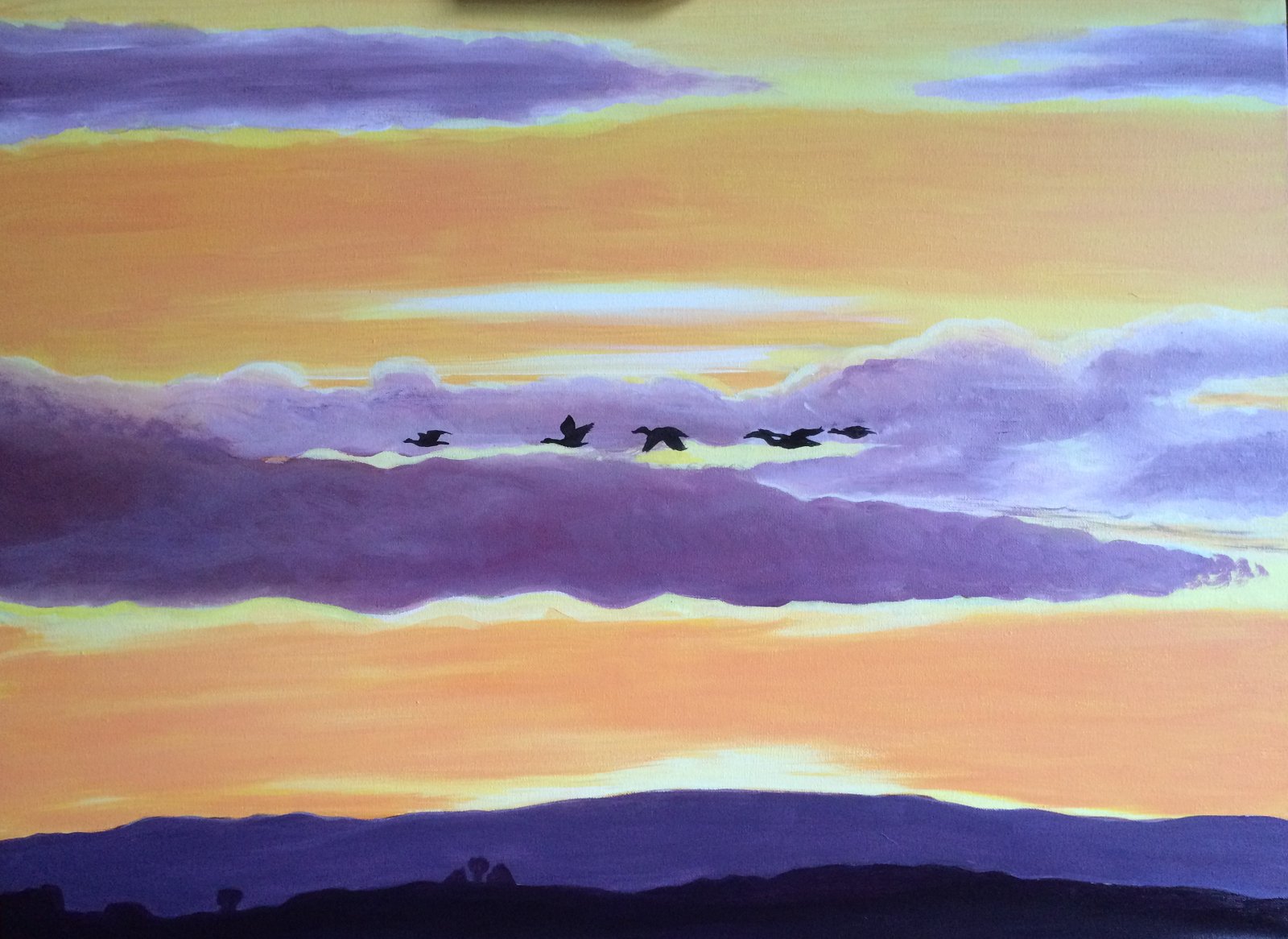 This was taken from a lovely photograph of a sunset. I accentuated the colours to bring out the purple and oranges.