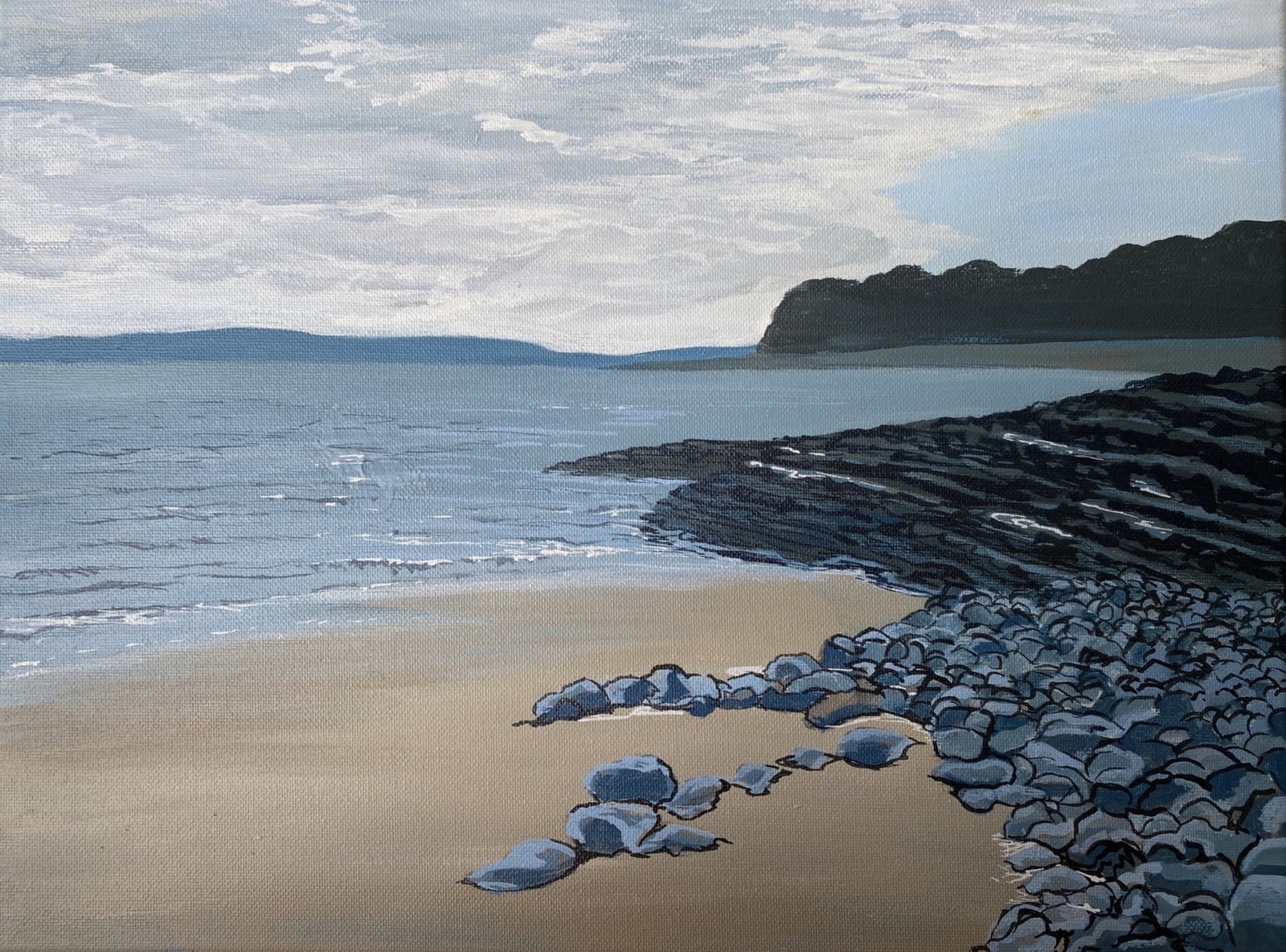 Porthkerry, 2024, 23x40 cm, acrylic on canvas