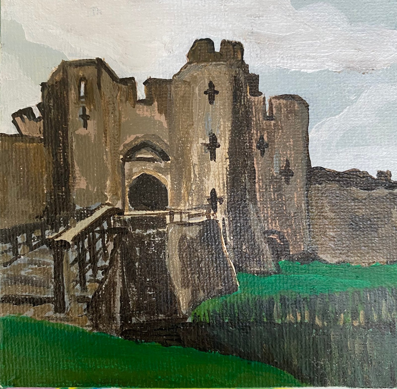 caerphilly castle, 2023, 10x10 cm, acrylic