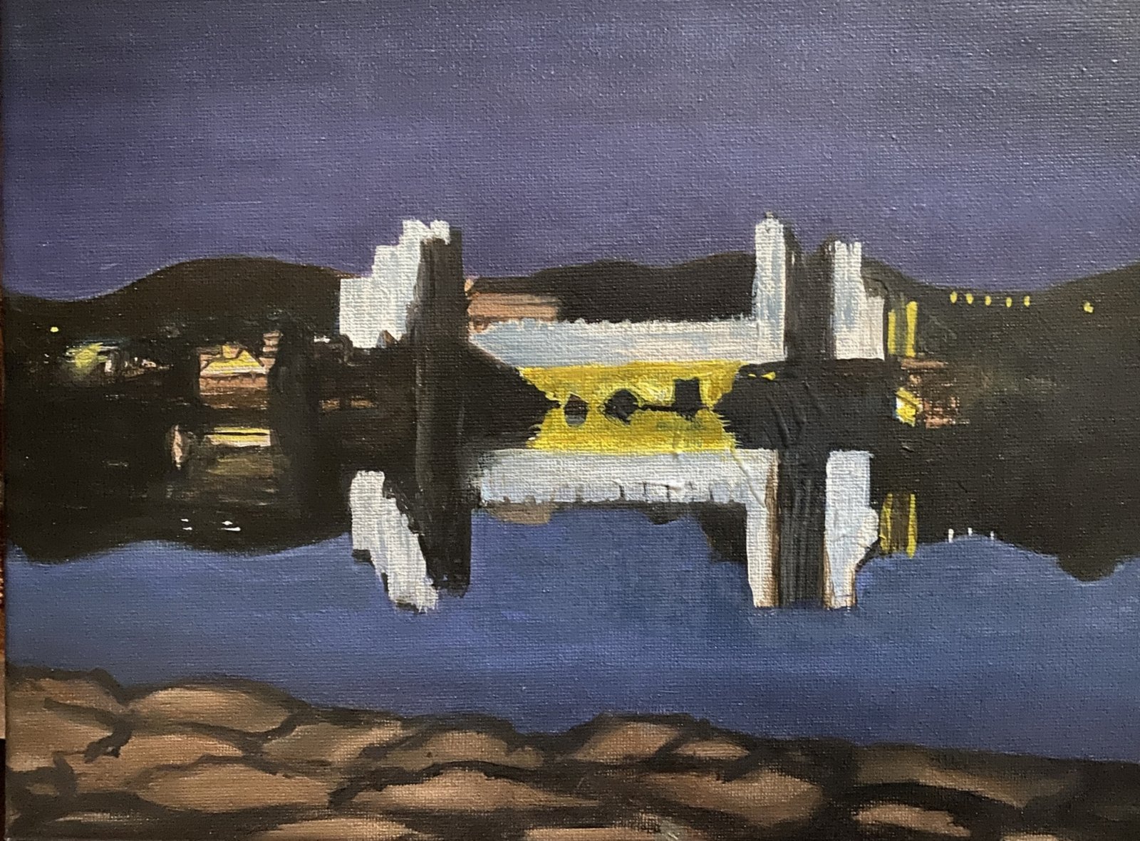 Caerphilly castle at night, 2025, acrylic on canvas