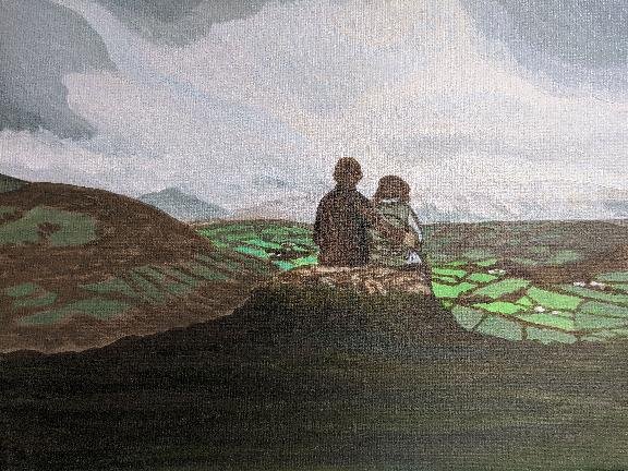 painted during easing of restrictions during Covid pandemic. This painting seems comforting to me, a couple of people looking out together to take in a view. Or looking and wondering about the future? Who knows, that's why it is good to stop and gaze all sorts of things come into your mind.